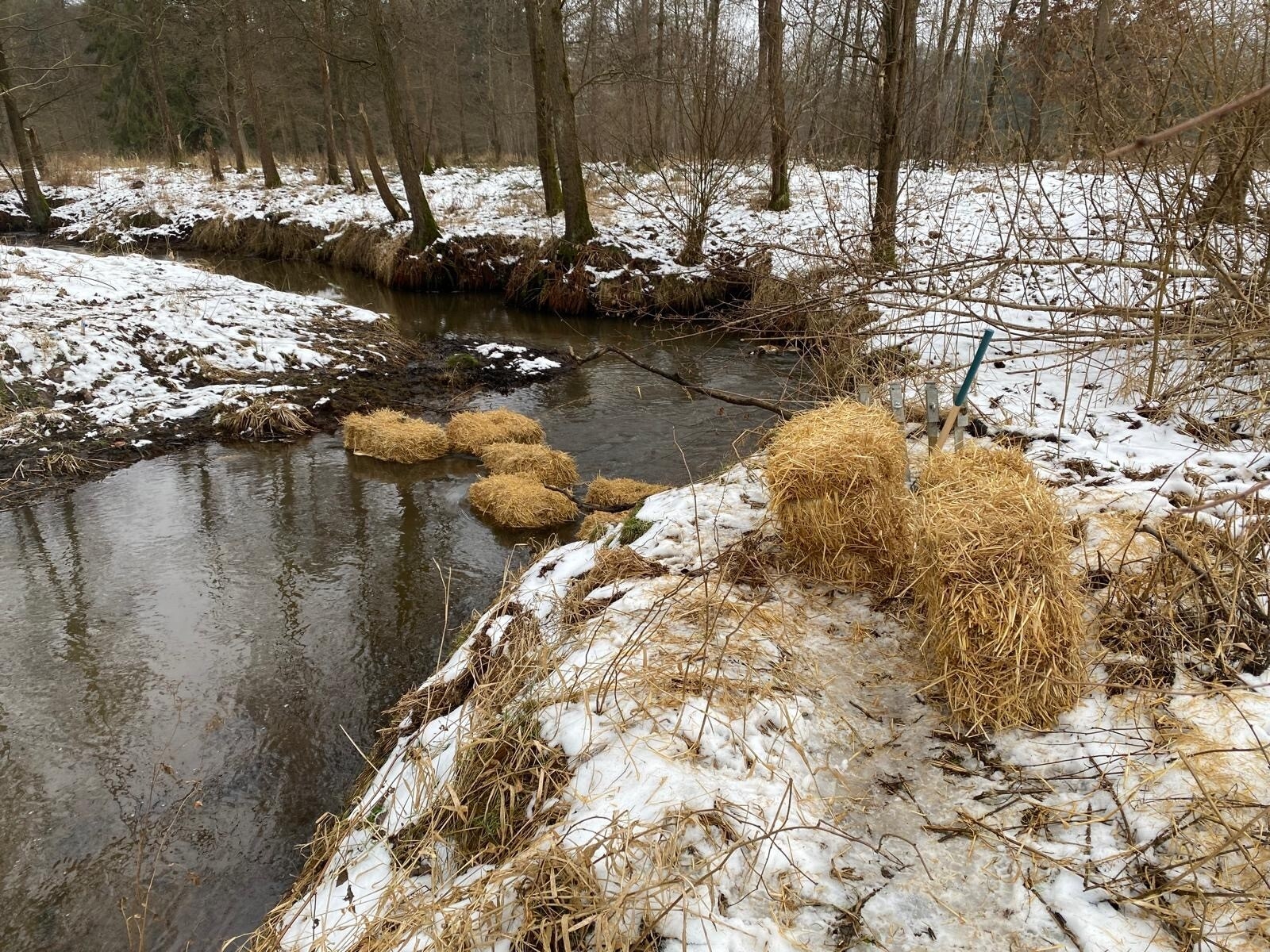 Bei Bohrarbeiten unter dem Bach Bomlitz hindurch nördlich des gleichnamigen Walsroder Stadtteils (Landkreis Heidekreis) ist heute Morgen gegen 9.15 Uhr Bohrspülung ausgetreten. Die Mitarbeiter der Bohrfirma haben eine Veränderung im Bachbett bemerkt und umgehend alle für diesen Fall vorbereiteten Notfallmaßnahmen eingeleitet. Bohrspülung wird unter anderem zur Kühlung des Bohrers und zum Austragen des erbohrten Bodenmaterials verwendet. Es ist ein Bentonit-Wasser-Gemisch, das als nicht wassergefährdend eingestuft ist. Dennoch haben die Mitarbeiter umgehend flussabwärts der Bohrung bereitgestellte Heuballen in den Bachlauf gelegt. Diese können die Bentonitmischung filtern. Zudem wurde ein Dichtungsmaterial in die Bohrung eingebracht. Als Ursache wird bislang angenommen, dass das Bentonit durch Wegsamkeiten im Untergrund in den Bachlauf gelangen konnte.