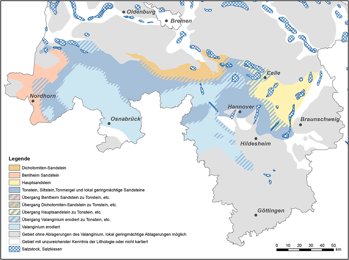 Die neue Kartenserie beschreibt rund 135 Millionen Jahre alte Schichten der Unterkreide. Sie enthalten in wenigen hundert bis 1500 Metern Tiefe wasserdurchlässige Sandsteine, die lokal sehr gute Voraussetzungen für eine Erdwärmegewinnung bieten. In diesen Schichten herrschen Temperaturen von circa 20 bis etwa 55 Grad Celsius. Die neue Kartenserie weist für Niedersachsen drei Gebiete mit solchen Sandsteinen aus: Im Westen die Region zwischen Bad Bentheim und Meppen, ein weiteres Gebiet von Goldenstedt über Sulingen bis etwa Nienburg sowie im Osten die Region zwischen Celle, Gifhorn und Peine.