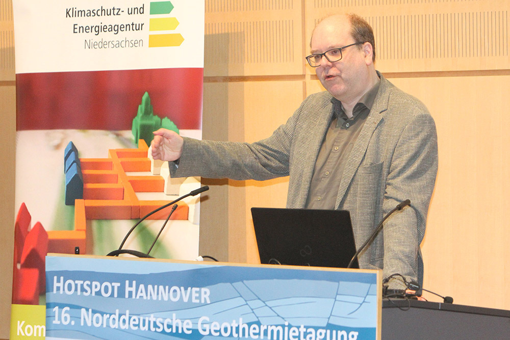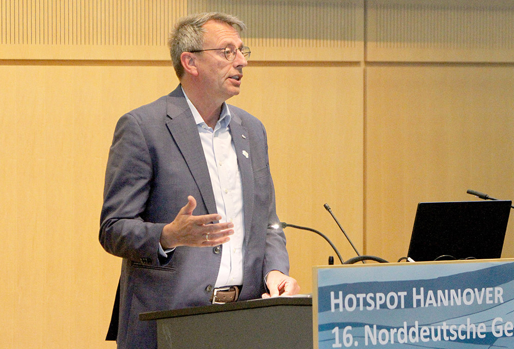 LBEG-Präsident Carsten Mühlenmeier freute sich über den großen Zuspruch. Das Zusammentreffen von so vielen Fachleuten, Experten und Entscheidungsträgern helfe, die Potenziale der Geothermie noch stärker in die Praxis umzusetzen, so der Behördenchef, der auch gleich die Potenziale benannte: „Geothermie ist stabil, zuverlässig und lässt sich in nahezu jedem kommunalen Kontext praktisch nutzen. Sie kann nicht nur in großflächigen Wärmenetzen zum Einsatz kommen, sondern auch für einzelne Gebäude, Quartiere und in gewerblichen Komplexen genutzt werden.“ Den Kommunen käme dabei eine entscheidende Rolle zu, denn das Ziel sei klar, dass alle privaten Wohngebäude, kommunale Liegenschaften und gewerbliche Gebäude künftig klimaneutral mit Wärme versorgt werden sollen. „Es sind die Fachabteilungen der Kommunen, die mit Unterstützung von Planungsfirmen und weiteren Fachleuten die zukünftigen Szenarien der Wärmeversorgung entwickeln“, so Carsten Mühlenmeier.