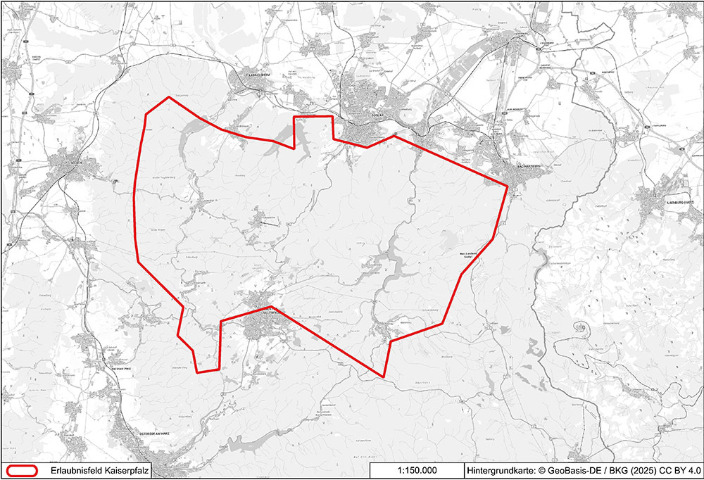 Das Landesamt für Bergbau, Energie und Geologie (LBEG) hat der Alpha Future Partners GmbH mit Sitz in München das Erlaubnisfeld „Kaiserpfalz“ zugeteilt. Die Erlaubnis zur Aufsuchung von Erzen zu gewerblichen Zwecken ist bis 31. Oktober 2028 auf drei Jahre befristet. Das Erlaubnisfeld „Kaiserpfalz“ ist gut 237,5 Quadratkilometer groß und erstreckt sich im Landkreis Goslar über weite Teile des westlichen Harzes von Bad Harzburg im Nordosten bis Wildemann im Südwesten und von Altenau im Südosten bis zur Innerstetalsperre im Nordwesten.