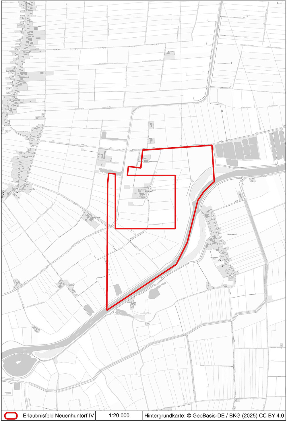 Zur Aufsuchung von Salzen teilt das Landesamt für Bergbau, Energie und Geologie (LBEG) der Uniper Kraftwerke GmbH zum 1. Dezember das Erlaubnisfeld Neuenhuntorf IV zu. Das Feld ist knapp 1,5 Quadratkilometer groß und erstreckt sich entlang des westlichen Ufers der Hunte gegenüberliegend der Ortschaft Neuenhuntorf. Die Erlaubnis zur Aufsuchung von „Stein-, Kali-, Magnesia- und Borsalzen nebst den mit diesen Salzen in der gleichen Lagerstätte auftretenden Salzen“ ist befristet auf vier Jahre bis zum 30. November 2029.