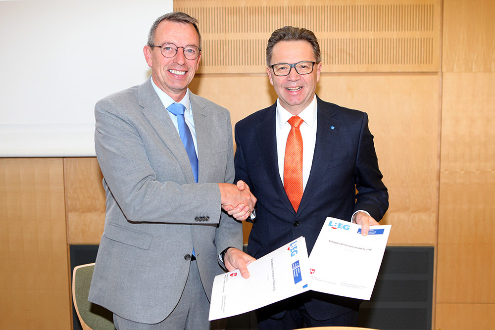Das Landesamt für Bergbau, Energie und Geologie (LBEG) und die Leibniz Universität Hannover (LUH) setzen auf eine verstärkte Zusammenarbeit, um Methoden für den nachhaltigen Umgang mit den natürlichen Ressourcen der Erde zu entwickeln. Dazu haben heute LBEG-Präsident Carsten Mühlenmeier und LUH-Präsident Prof. Dr. Volker Epping im Geozentrum Hannover eine Kooperationsvereinbarung unterzeichnet.
