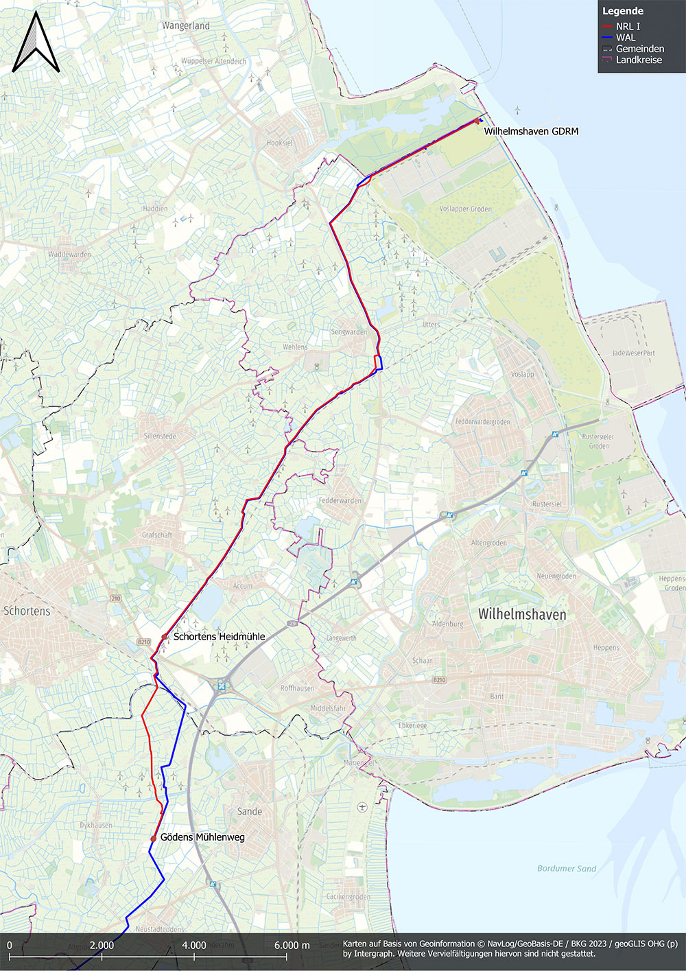 Die Firma Open Grid Europe GmbH (OGE) plant die Errichtung und den Betrieb der Wasserstoffleitung Nr. 502 H2ercules Nordsee-Ruhr-Link I (NRL I) von Wilhelmshaven nach Dykhausen in der Gemeinde Sande (Landkreis Friesland). Dafür werden jetzt die Antragsunterlagen ausgelegt.