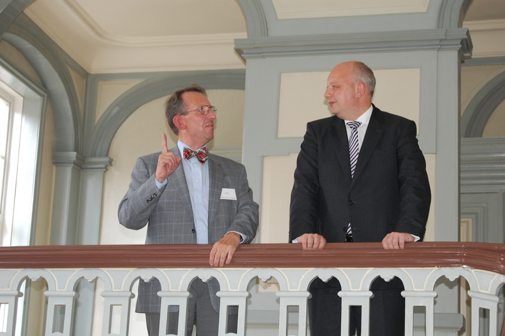 LBEG-Präsident Lothar Lohff informiert Wirtschaftsminister Bode über die Historie des Gebäudes