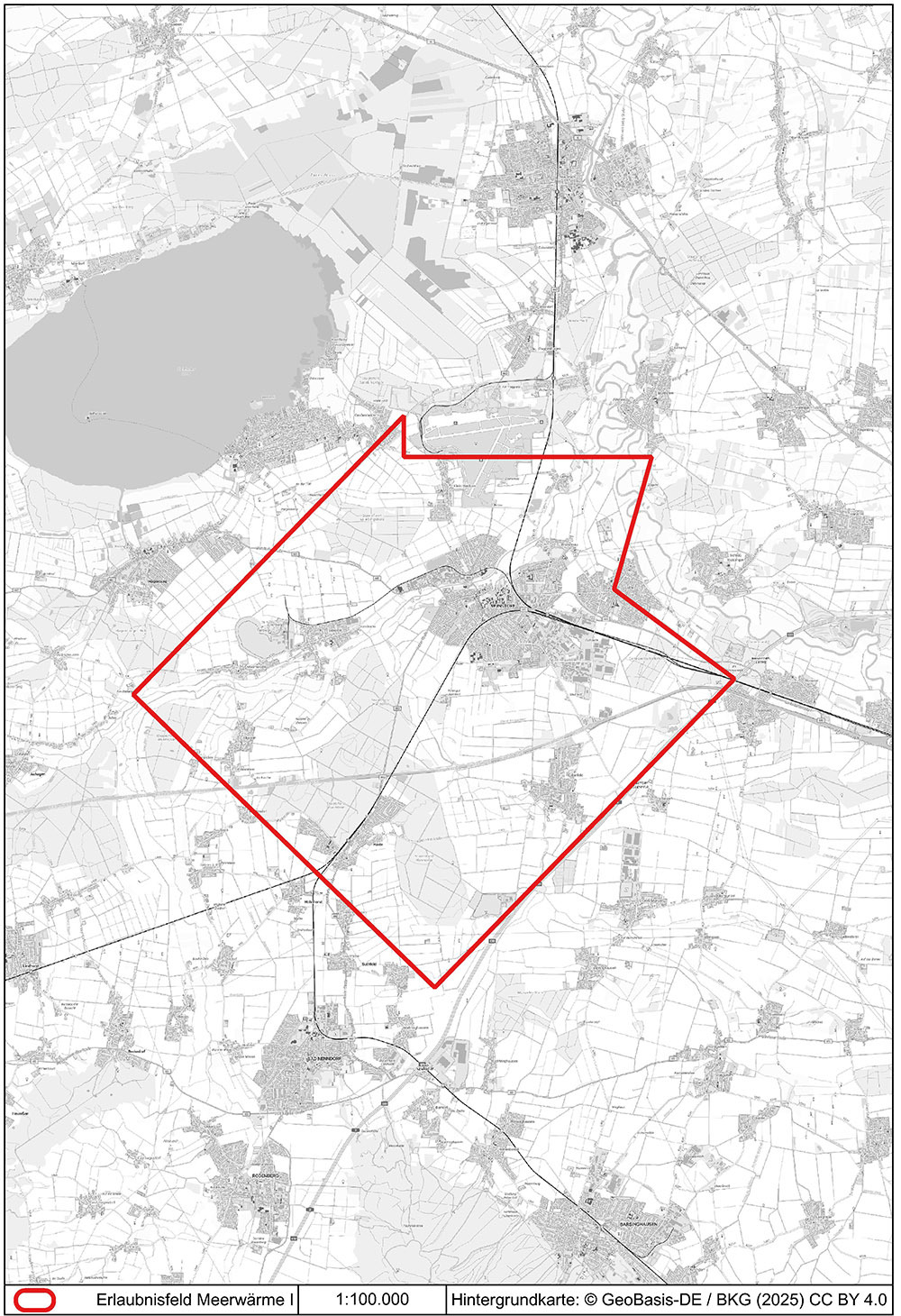 Das Erlaubnisfeld Meerwärme I erstreckt sich rund um Wunstorf bis nach Bokeloh, Haste und an die Bundesautobahn 2.