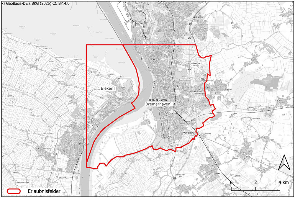 Zur Aufsuchung von Erdwärme aus mehr als 400 Metern Tiefe hat das Landesamt für Bergbau, Energie und Geologie (LBEG) der BEAN Bremerhavener Entwicklungsgesellschaft zum 1. Juni die Erlaubnisfelder Blexen I und Bremerhaven I zugeteilt. Das Feld Blexen I liegt im westlichen Bereich der Wesermündung, überdeckt den nördlichen Teil von Nordenham und ist gut 26,5 Quadratkilometer groß. Das Feld Bremerhaven liegt im östlichen Bereich der Wesermündung, überdeckt den südlichen Teil der Hafenstadt und ist gut 60 Quadratkilometer groß. Aufgrund der Lage in den beiden Bundesländern Niedersachsen und Bremen ist das zusammenhängende, annähernd 87 Quadratkilometer große Gebiet in zwei Erlaubnisfelder aufgeteilt worden. Beide Erlaubnisse sind befristet auf drei Jahre bis zum
