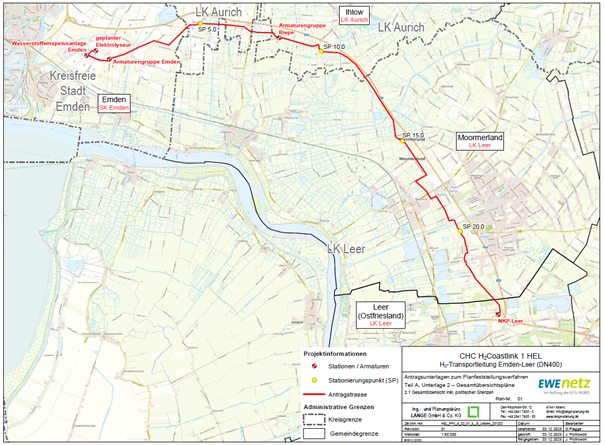 Planfeststellungsverfahren mit Umweltverträglichkeitsprüfung zur Errichtung und den Betrieb der Wasserstoffleitung „Coastlink 1 HEL H₂-Transportleitung Emden-Leer“ (HEL)