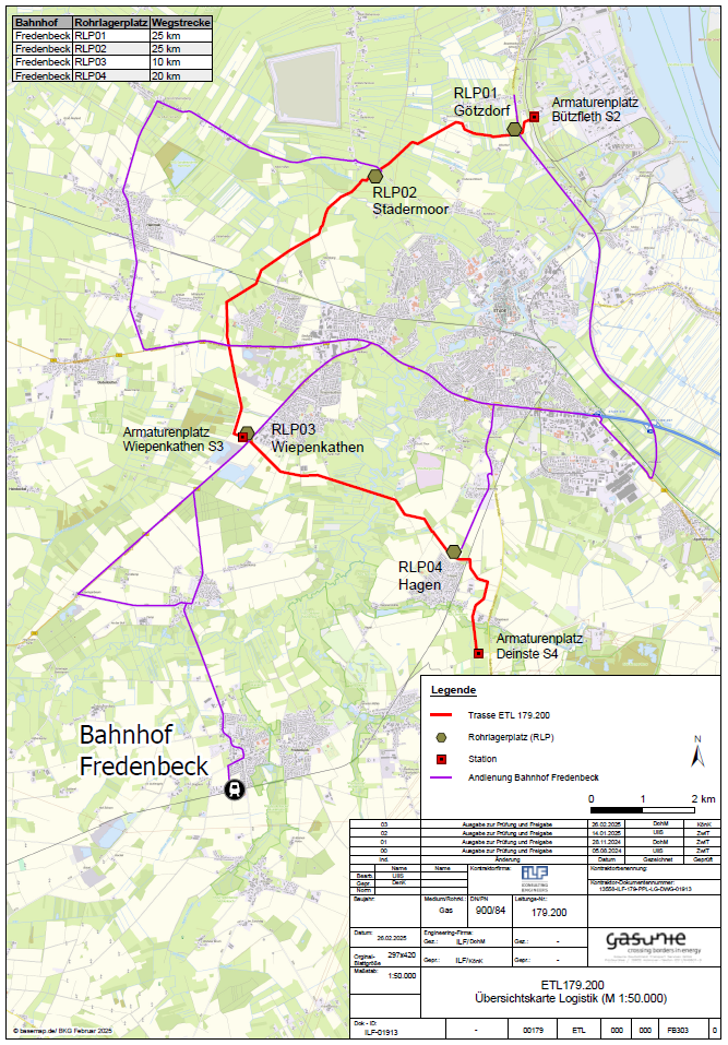 Das Planfeststellungsverfahren für die ETL 179.200 umfasst zudem die Erweiterung und den Betrieb der bestehenden Station Bützfleth S2 zur Anbindung der ETL 179.200 an den ersten Abschnitt des Gesamtvorhabens, die ETL 179.100, sowie die Errichtung und den Betrieb des Armaturenplatz Wiepenkathen (S3) und die Übergabestation Deinste (S4) zur Einbindung der ETL 179.200 in die bestehende Fernleitung (ETL 125) und in die noch zu errichtende Fernleitung ETL 182.