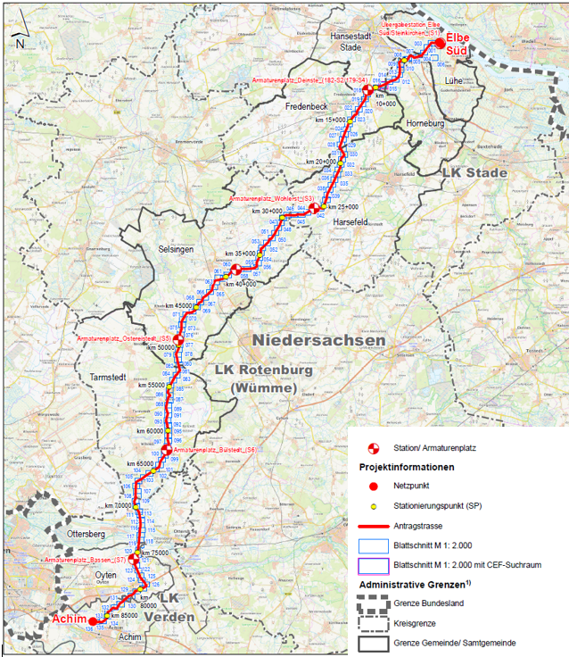 Durch das Vorhaben betroffen sind der Flecken Ottersberg, die Gemeinde Oyten, die Hansestadt Stade, die Samtgemeinden Fredenbeck, Harsefeld, Horneburg, Lühe, Selsingen und Tarmstedt sowie die Stadt Achim.