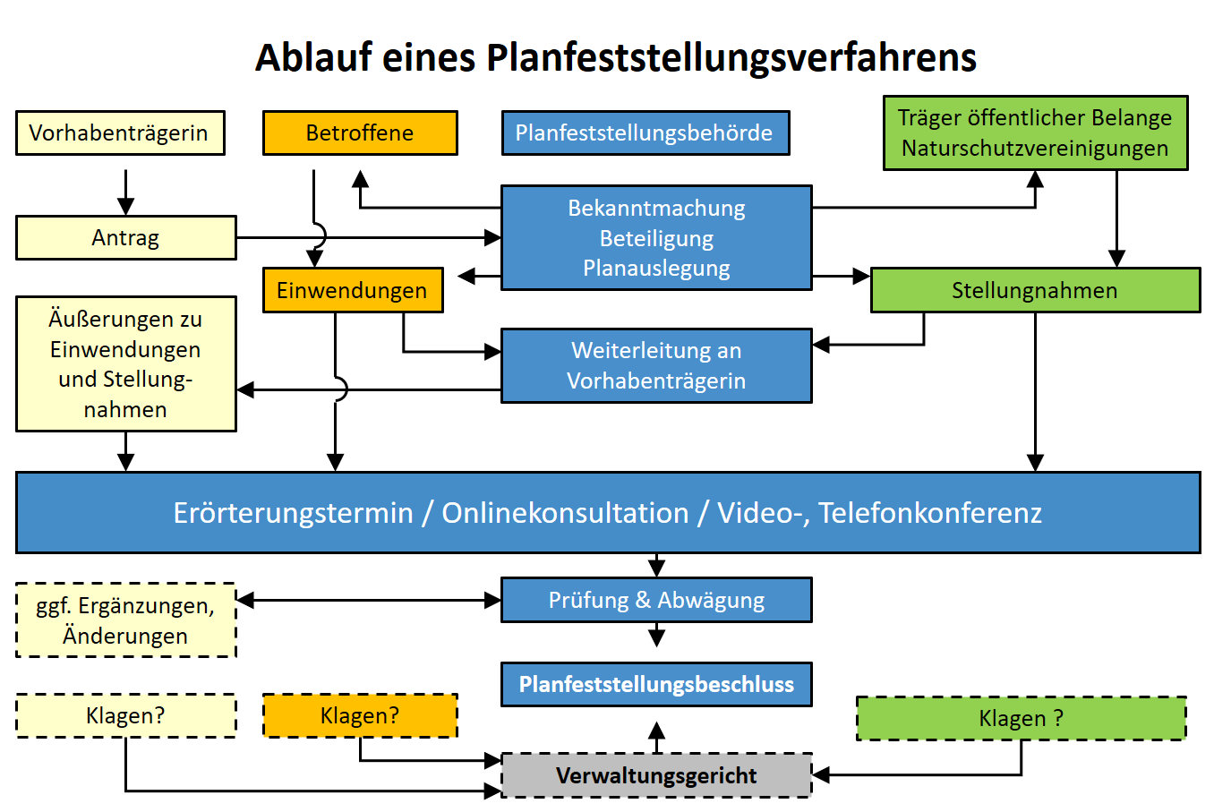 Ein Planfeststellungsverfahren wird in der Regel nach folgendem Schema durchgeführt.