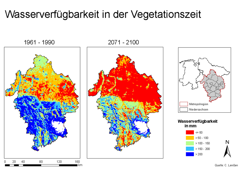 Der Klimawandel mit einem Anstieg der Durchschnittstemperaturen um 2–4 °C und einer Verschiebung der Niederschlagsverhältnisse kann für die Landwirtschaft sowohl positive als auch negative Folgen mit sich bringen. In trockeneren Regionen wie dem Landkreis Celle können geringere Sommerniederschläge die bestehende Wasserproblematik weiter verschärfen. In kühleren Regionen wie dem Landkreis Göttingen bieten höhere Temperatursummen Möglichkeiten für frühere und längere Vegetationszeiten.