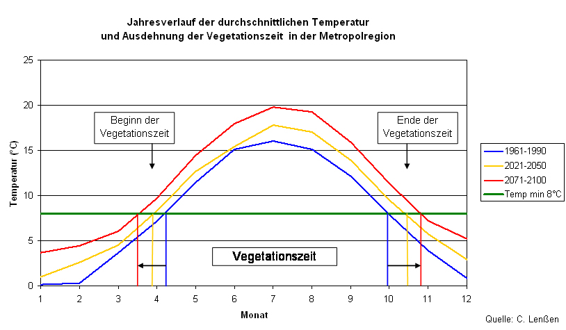 Neben dem Wasserangebot als limitierendem Faktor ist die Summe der Temperaturen über 5° C bzw. 8 °C für Wärme liebende Pflanzen entscheidend für optimales Wachstum. Daher wurden Standorte herausgefiltert, die über ausreichend Wasser verfügen und die jeweilige Mindesttemperatursumme aufweisen.