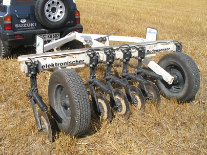 Das erstere Verfahren arbeitet berührungslos. Zur Messung wird ein Gerät (EM38) über den Acker gezogen und liefert als Summenparameter die scheinbare elektrische Leitfähigkeit über die gesamte Messtiefe von ca. 1,5 m.