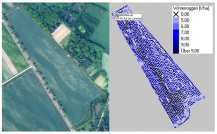Ernteertragsdaten sind Messwerte, die während des Druschvorganges auf dem Mähdrescher erhoben werden und Auskunft geben über die aktuell geerntete Getreidemenge. Durch die GPS-Steuerung kann punktgenau der Ertrag ermittelt werden und Rückschlüsse auf die Ertragsfähigkeit des jeweiligen Standortes gezogen werden. Obwohl zahlreiche Faktoren (Boden, Vorfrucht, Fruchtart, alle Bewirtschaftungsmaßnahmen, Wasserhaushalt, Mikroklima u. a.) den Ertrag beeinflussen, können Zusammenhänge mit der Bodenentwicklung erkannt werden. Aber es spielen auch zahlreiche nicht bodenkundliche Faktoren eine Rolle wie z.B. Waldschatten, Nutzungsgeschichte, Saatgutwechsel, Düngung, Pflanzenschutz, Vorgewende und andere technische Faktoren, die derzeit noch nicht in Gänze für die bodenkundliche Interpretation erschlossen sind. Eine richtige Interpretation der Ernteertragsdaten ist nur bei sehr genauer Betriebskenntnis möglich, die eine intensive Kommunikation zwischen Betrieb und Bodenkartierer erfordert. Die bodenkundliche Interpretation dieser Daten steht deshalb noch am Anfang.