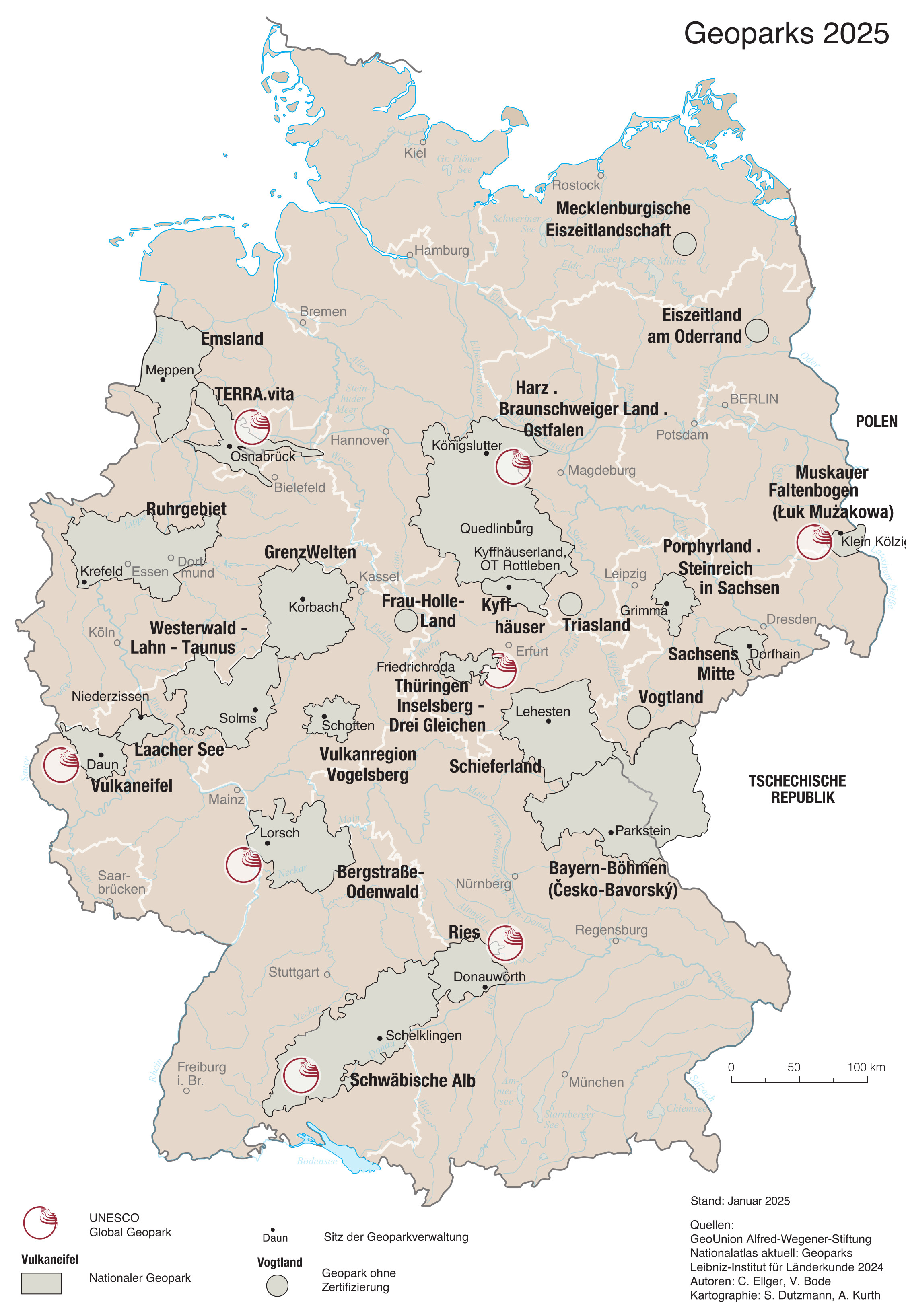 Auf Grundlage einer Richtlinie der Staatlichen Geologischen Dienste von Deutschland aus dem Jahr 2003 können geologisch besonders interessante Regionen als „Nationaler GeoPark“ anerkannt werden. In Niedersachsen gibt es drei Nationale Geoparks, den Geopark Harz . Braunschweiger Land . Ostfalen, den Natur- und Geopark Terra.vita sowie den Geopark Emsland. Der Geopark Harz . Braunschweiger Land . Ostfalen und der Natur- und Geopark Terra.vita wurden auch vom „Europäischer Geoparknetzwerk EGN“ und dem „Global Geopark System (UNESCO)“ zertifiziert.
