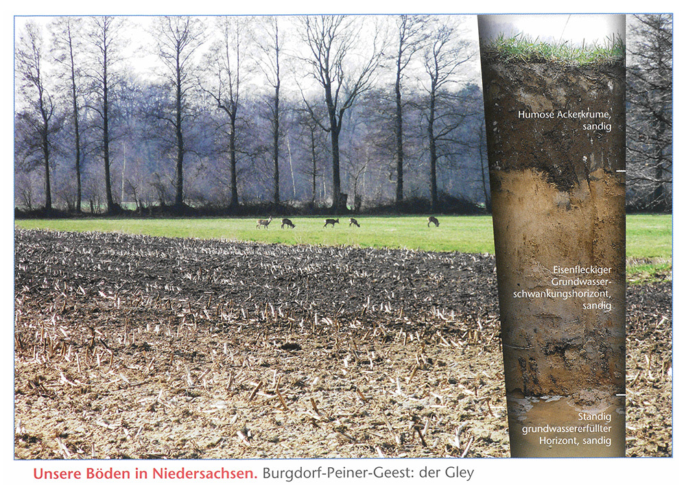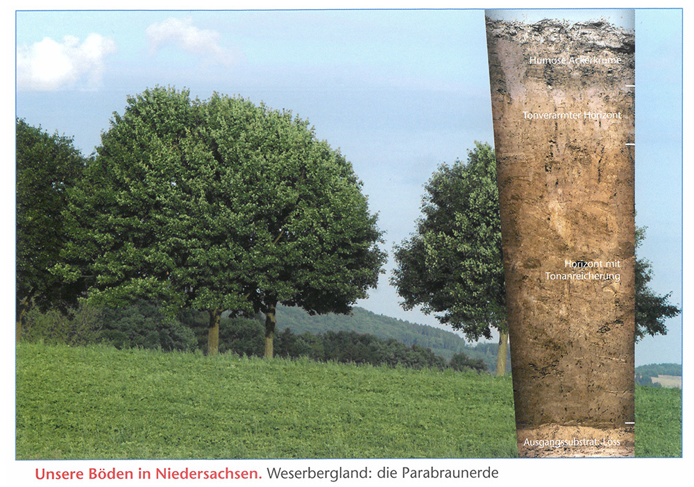 Die Fruchtbarkeit der Böden ist in Niedersachsen unterschiedlich verteilt. Auch wenn der Blick häufig auf den humosen Oberboden gelenkt wird, sind für die Bodenfruchtbarkeit die tieferen Bereiche des Bodens mindestens genauso bedeutsam. Wie gut in den tieferen Bereichen des Bodens Wasser gespeichert wird, ist entscheidend dafür, ob die Pflanzen Trockenphasen gut überstehen können. Auch wichtige Nährstoffe finden sich in den Unterbodenhorizonten. Je nach Material können die Pflanzenwurzeln den Boden tief durchdringen und sich diese Vorräte erschließen.