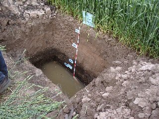 Bodenprofil mit freigelegter Grundwasseroberfläche