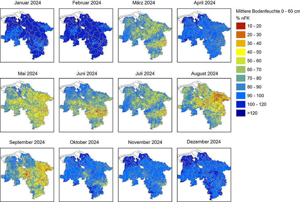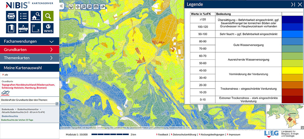 Niedersächsischer Bodenfeuchteinformationsdienst – täglich aktuelle Informationen zu Bodenfeuchte und Sickerwasser
